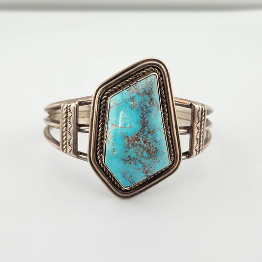 Navajo Henry Sam Sterling Silver Turquoise Cuff Bracelet Huge! 7"
