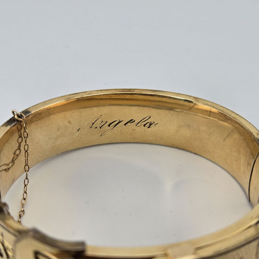 Victorian Gold Filled Black Enamel Belt Buckle Bangle Ornate Antique Bracelet