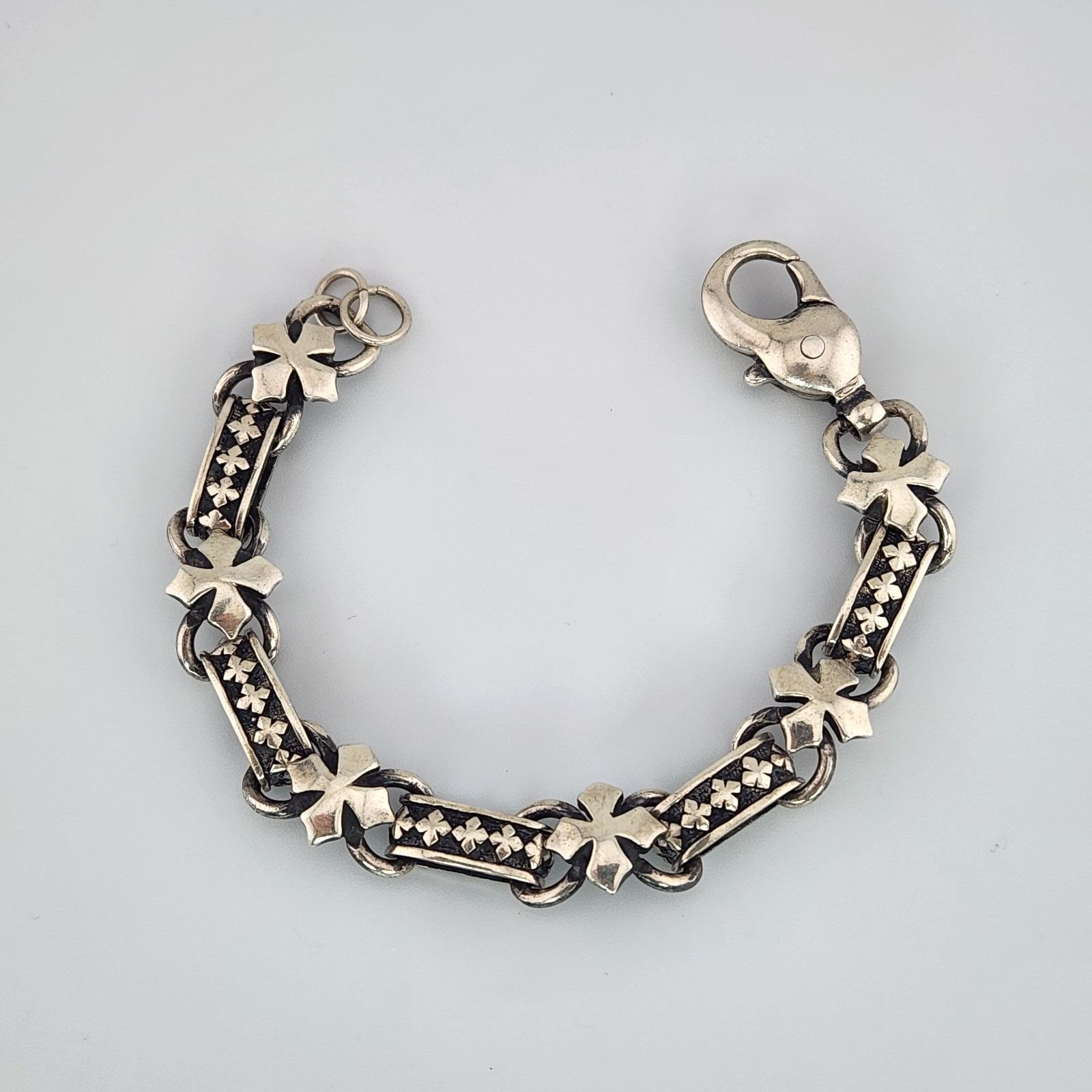 King Baby Sterling Silver Iron Cross Chain Link Mens Bracelet 8"