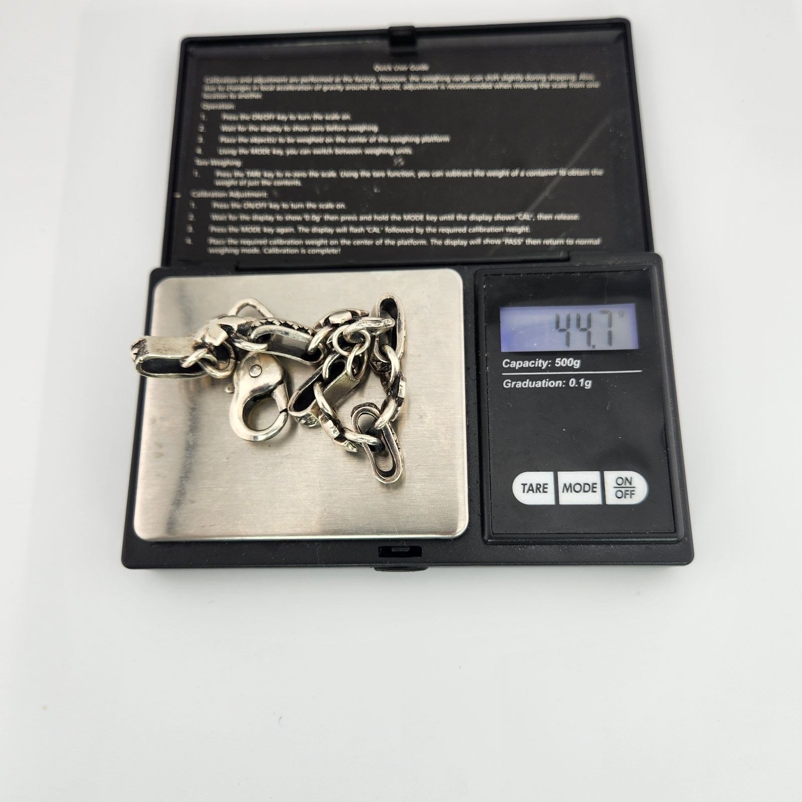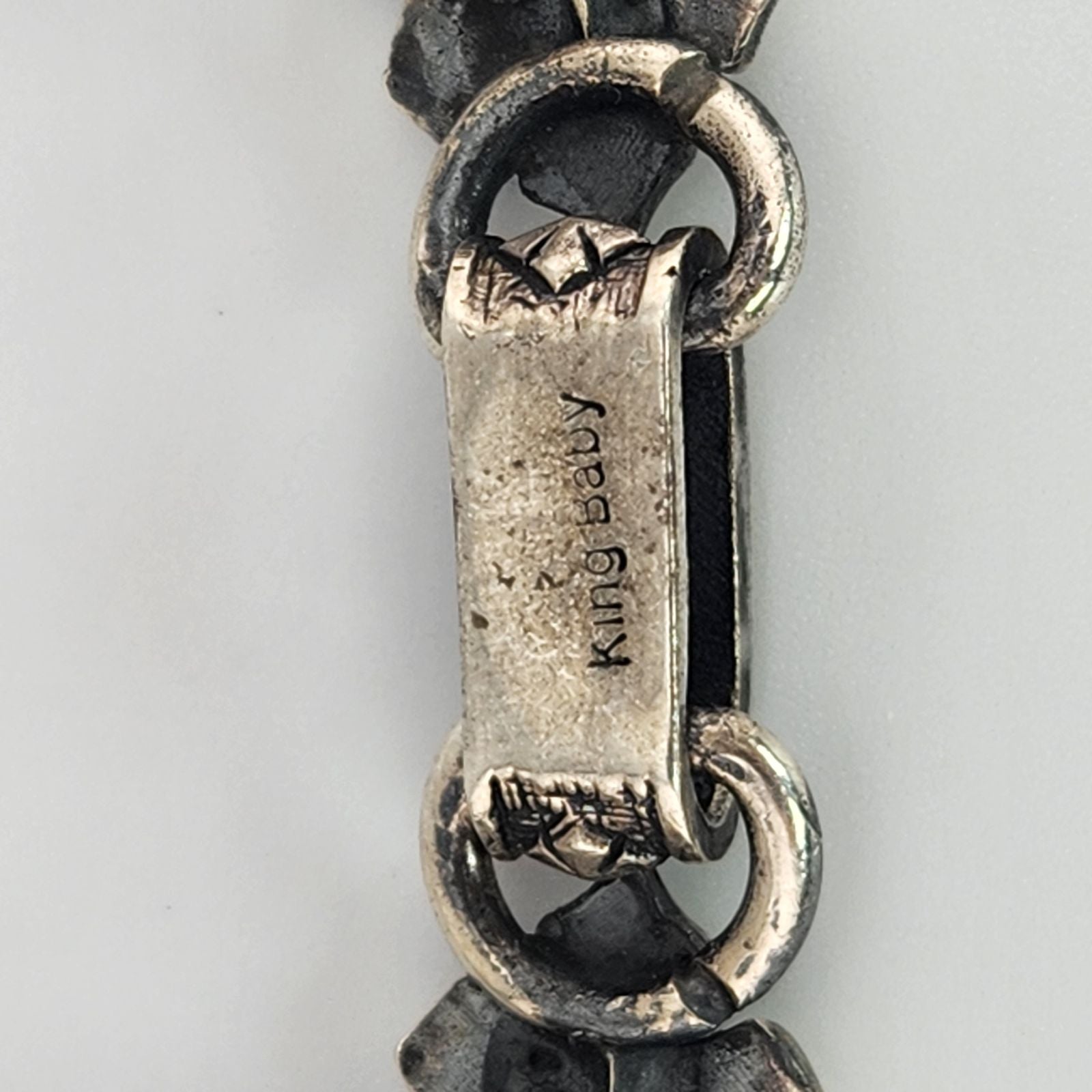 This King Baby Studio bracelet is a must-have for any fashion-forward man. The sterling silver and iron construction ensures durability and style, while the cross shape adds a touch of edgy sophistication. With a length of 8 inches, this bracelet is perfect for any wrist size. The chain style is classic and versatile, making it suitable for any occasion. Add this piece to your jewelry collection today and elevate your style game.