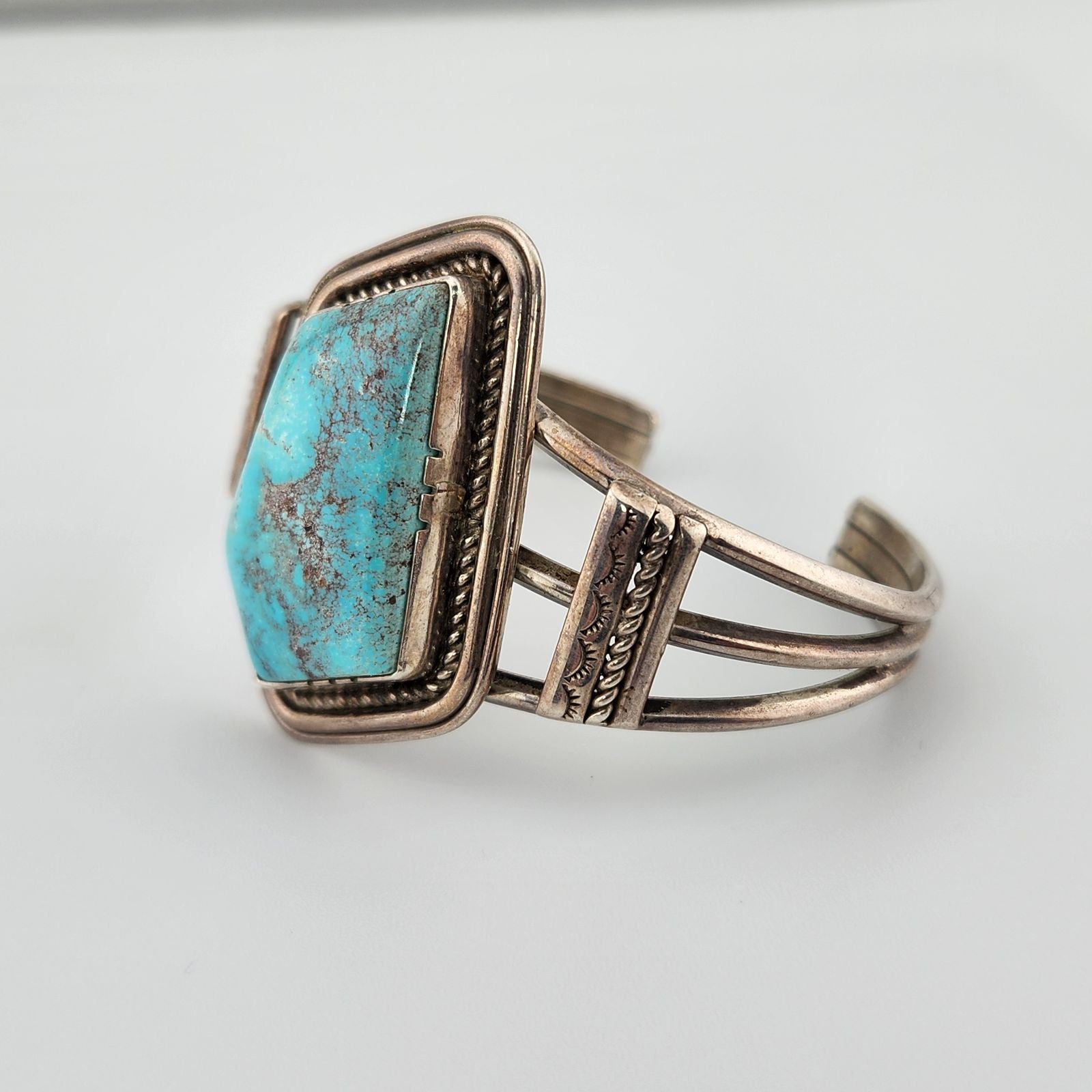 Sterling Silver Turquoise Cuff Bracelet 6" Native American Dennis Smith Navajo