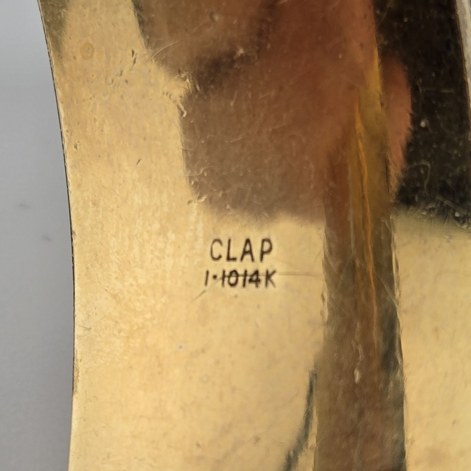 Add a touch of vintage charm to your outfit with this stunning black enamel belt buckle bangle. The ornate antique bracelet features a buckle closure and is made of gold filled material. The black enamel coating gives it a unique and edgy look that is perfect for any occasion. The bangle style and filled main stone treatment make it a must-have for any jewelry collection. This bracelet is perfect for those who love vintage and antique jewelry and want to add a touch of elegance to their everyday outfits.