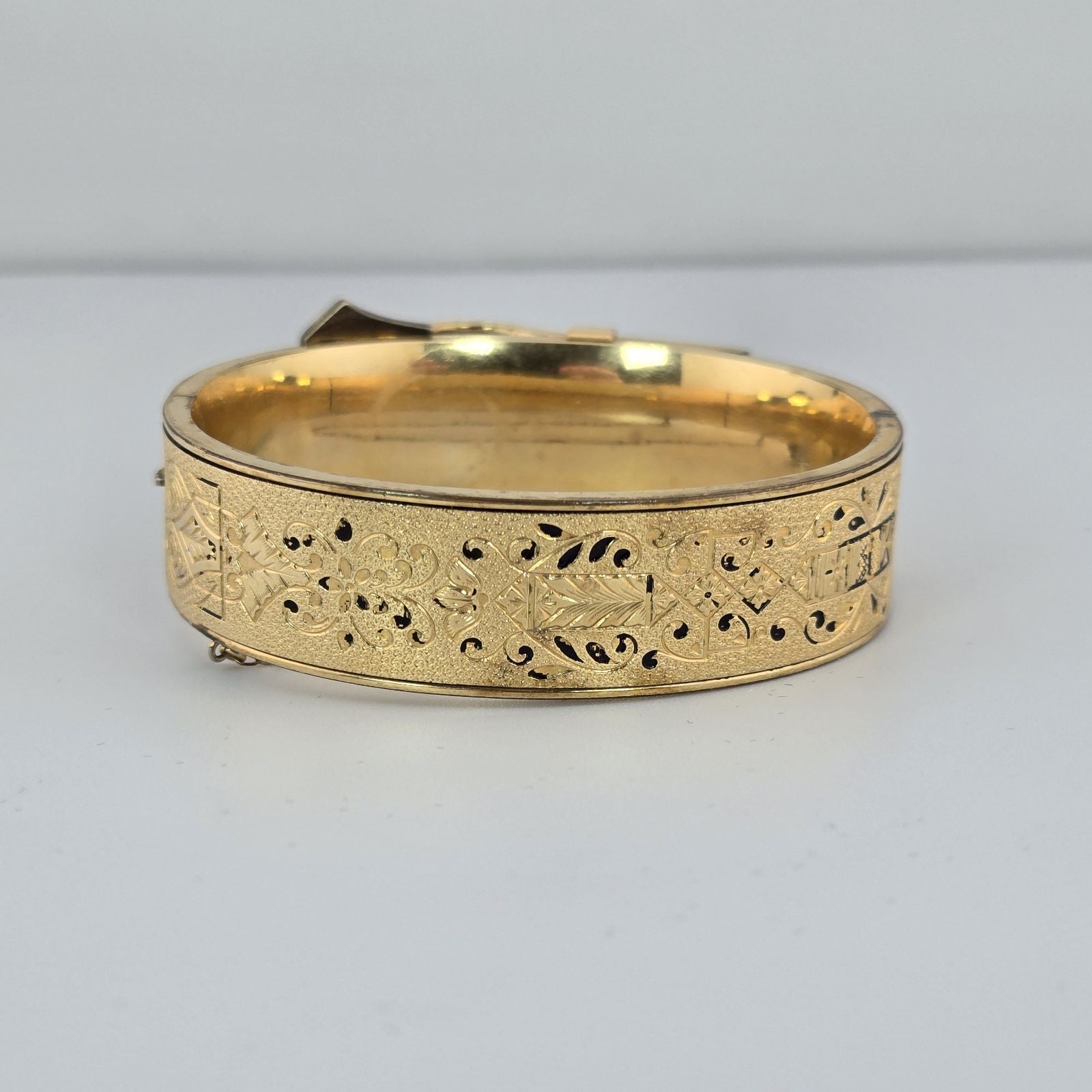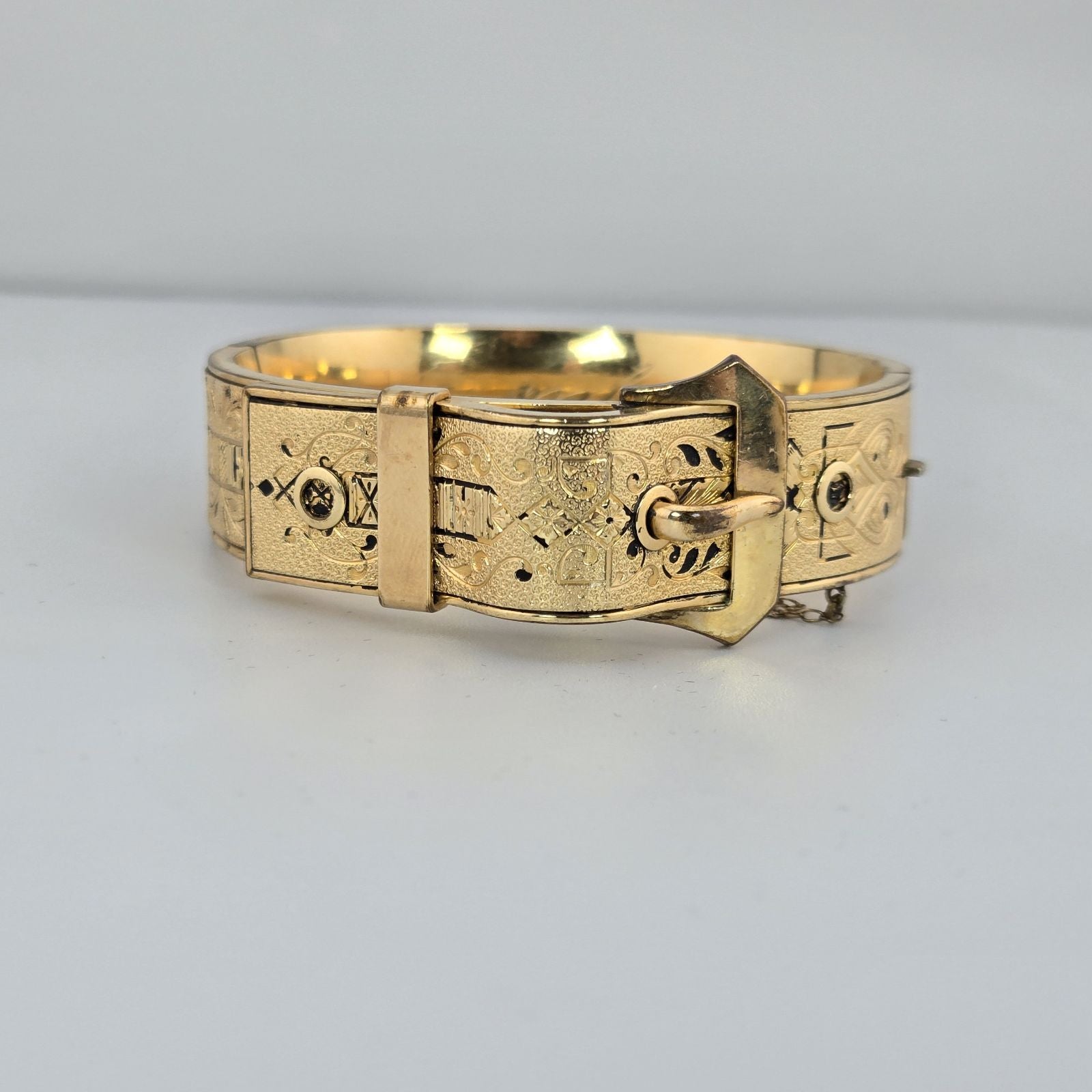 Victorian Gold Filled Black Enamel Belt Buckle Bangle Ornate Antique Bracelet